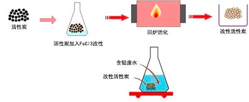 圖2。活性炭修改的實驗程序。活性炭改性包括1:用65%的硝酸和濃硫酸氧化,2:用FeCl 3包覆氧化的活性炭。含有2.5%Fe 3+的 6H 2 O溶液(將pH調節至12,并且在80℃下進行涂覆24小時),3:在300℃下在N2氣氛下煅燒3小時,4:生產改性活性炭 。5:批處理。